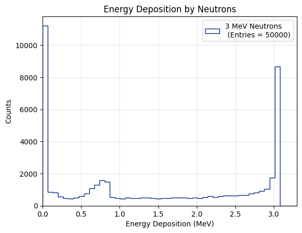I am currently generating gammas and neutrons and in both cases I have some events with an energy deposition grater than the initial particle genergy. Actually in the gammas case they are very few events (more or less from 0.25% to 0.60%) while for neutrons it depends on the enegry. For 4 MeV neutrons it’s the 15%, for 3 MeV neutrons the 18% and for 2 MeV neutrons 24%. Is it consistent with the physics?