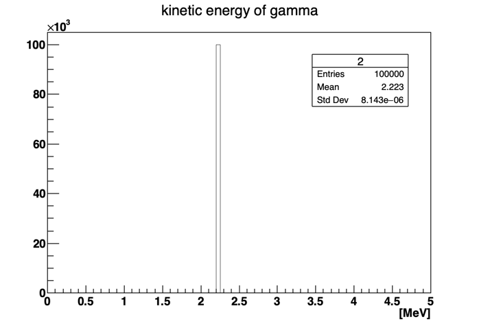 However, if I am looking at the energy spectrum of the emitted gamma from the neutron capture on H with the same setup, I get a continuous spectrum instead of a ray at 2.223 MeV: