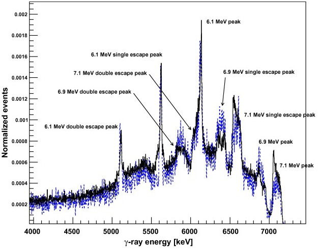 Then, most land on 6.049 MeV, which is never measured. In this article one sees the filling of these levels, it should be 50 % for 7.116 MeV and the rest split for 6.129 & 6.917 : https://doi.org/10.1016/S0168-9002(00)00303-X