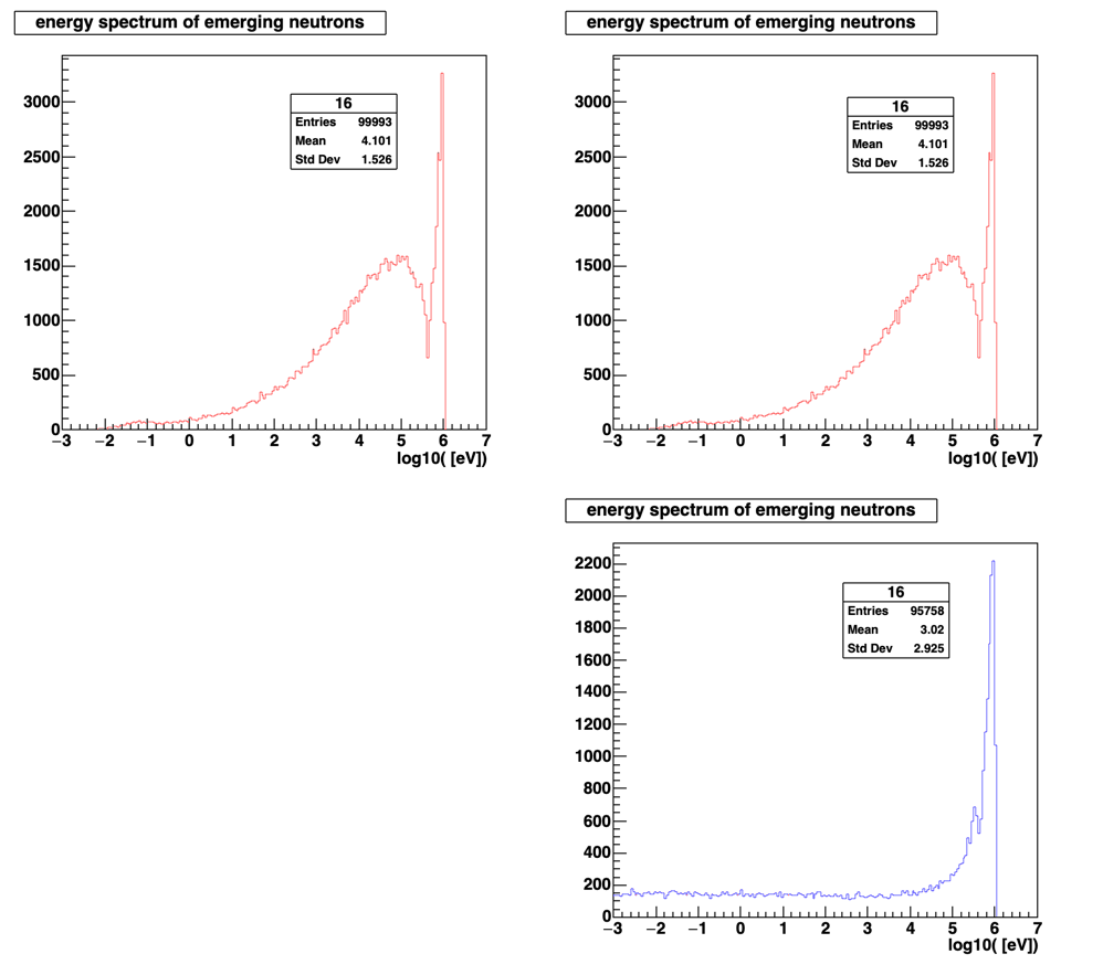 Hallo K, in your last plot (Hadr06) is the shift, redistribution not in line with a moderation? What happens if you choose a larger thickness. Also maybe your requirements are too stringent, the physics can’t work. What happens if you try a composite structure of moderators.